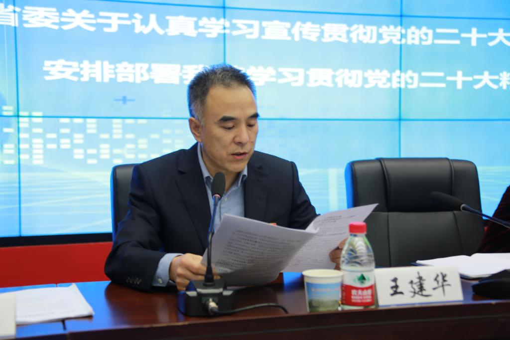 副院长王建华全面传达学习《方案》具体内容。他指出,《方案》深刻阐述了学习宣传贯彻党的二十大精神的重大意义,用“七个着力点”、“四个走实走深”等对学习宣传、贯彻落实党的二十大精神作出了全面部署,提出了重要要求,为我们深入推进党的二十大精神的学习贯彻落实提供了根本遵循,对于坚持以党的二十大精神为指引,谱写陕西高质量发展新篇章具有重要意义。
