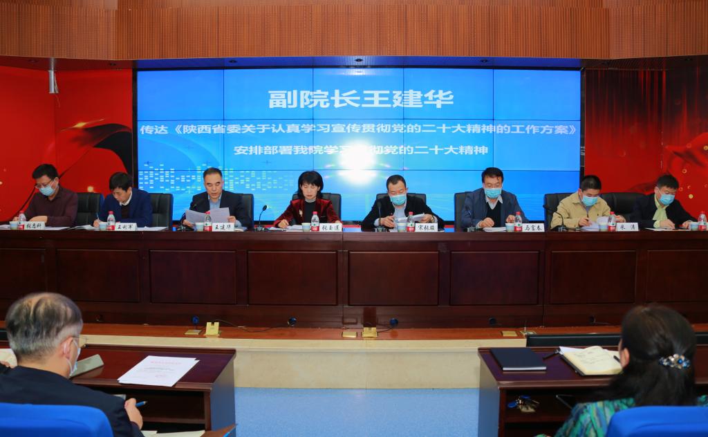 召开中层干部大会,专题传达《中共陕西省委关于认真学习宣传贯彻党的二十大精神的工作方案》(以下简称“《方案》”)精神并安排部署相关工作。院党委领导班子,各处室、各科室负责人,各科室联络员参会。宋张骏院长主持。