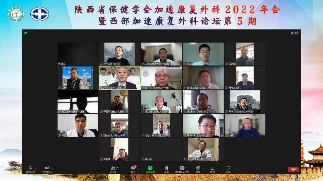 协办的陕西省保健学会加速康复外科专委会2022年会暨西部加速康复外科论坛第5期于线上如期举行。会议以“提高手术技艺、减少手术并发症,促践行ERAS”为主题,外科、麻醉、护理三大分会场同时进行,邀请来自北京、上海、广州、福建、四川、重庆、河南、安徽等地的20位全国知名专家以及省内学者共计84位专家共同探讨,吸引1.5万余人次在线观看。