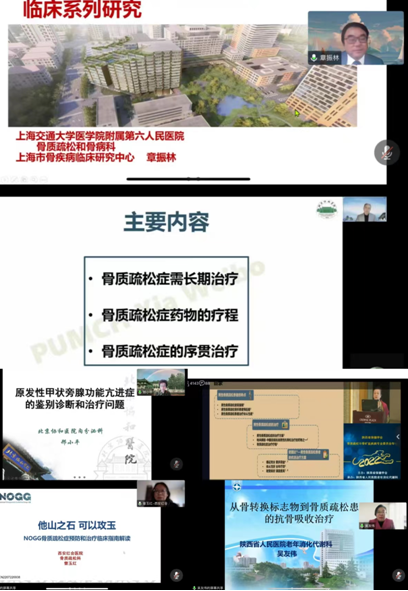 史丽萍教授、吴友伟教授、空军军医大学西京医院夏跃胜教授分别做《NOGG骨质疏松症预防和治疗临床指南解读》《男性骨质疏松症诊疗指南解读》《从骨代谢标志物到骨质疏松的抗骨吸收治疗》《“三高”人群的骨质疏松症防治》主题讲座。下午场,上海市第六人民医院岳华教授、中南大学湘雅二院谢忠建教授、厦门大学附属成功医院梁萌教授、交大一附院马兴教授、五楼自拍