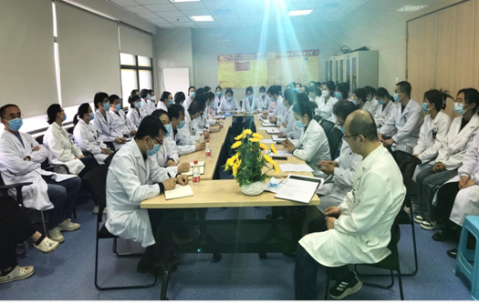在听取了科室晨交班内容后,两名医师对科室疑难危重病例进行汇报,科室各医疗组组长、陈丽宏主任及三位外科室临床专家从不同角度分别对病例进行了详细的讨论和点评。接着,医务处数据中心苏亚妮主任对科室上年度目标任务完成情况及公立医院绩效考核相关指标进行详细的分析解读,行风建设办公室周定永主任对科室上年度的满意度情况进行通报并进行行风专题教育培训。随后,医务处各部门负责人同科室医护人员就工作中出现的问题进行了深入的交流讨论。