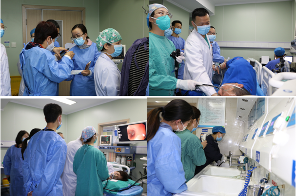 腔镜中心,腔镜中心李颖教授联手麻醉医生岳芳硕士进行无痛胃镜检查演示,腔镜中心侯亚丽教授携手麻醉医生王晖教授演示无痛肠镜检查,腔镜中心赵莉、龚彩丽进行了内镜清洗、测试的演示。与会的学员纷纷表示内容精彩、收获满满。