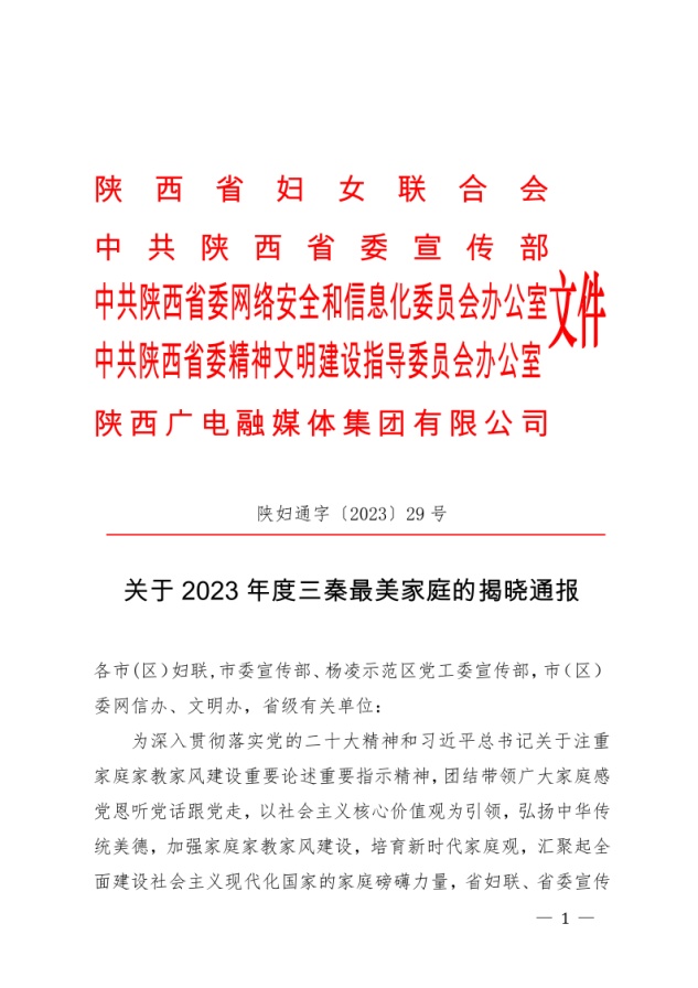 为深入贯彻落实党的二十大精神和习近平总书记关于注重家庭家教家风建设的重要论述重要指示精神,根据省妇联、省委宣传部、省委网信办、省委文明办、陕西广电融媒体集团有限公司联合下发的《关于做好2023年全国最美家庭推荐工作暨寻找三秦“最美家庭”活动的通知》,对照评比参考标准,经院党委研究,院工会考察评议、组织推荐申报,近日,2023年度“三秦最美家庭”名单揭晓,五楼自拍