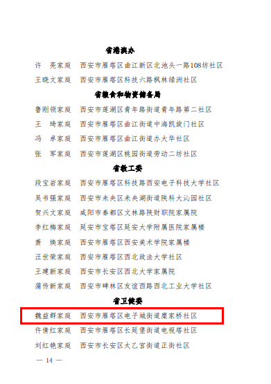 职工魏益群家庭荣获陕西省“三秦最美家庭”称号。
