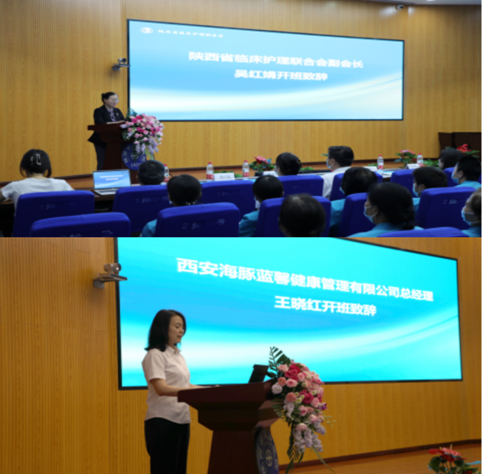 6月7-8日,由陕西省临床护理联合会主办、西安海豚蓝馨健康管理有限公司协办的第一期医疗护理员培训班顺利举办。开班仪式由陕西省护理联合会副秘书长惠蓉主持,现场莅临的嘉宾有陕西省临床护理联合会副会长吴红娟、副会长刘晓梅、副会长赵素平、西安海豚蓝馨健康管理有限公司总经理王晓红、副总经理张建国等。