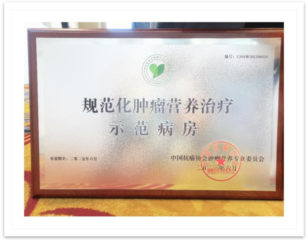 五楼自拍 肿瘤内科获批中国抗癌协会肿瘤营养专委会“规范化肿瘤营养治疗示范病房”
