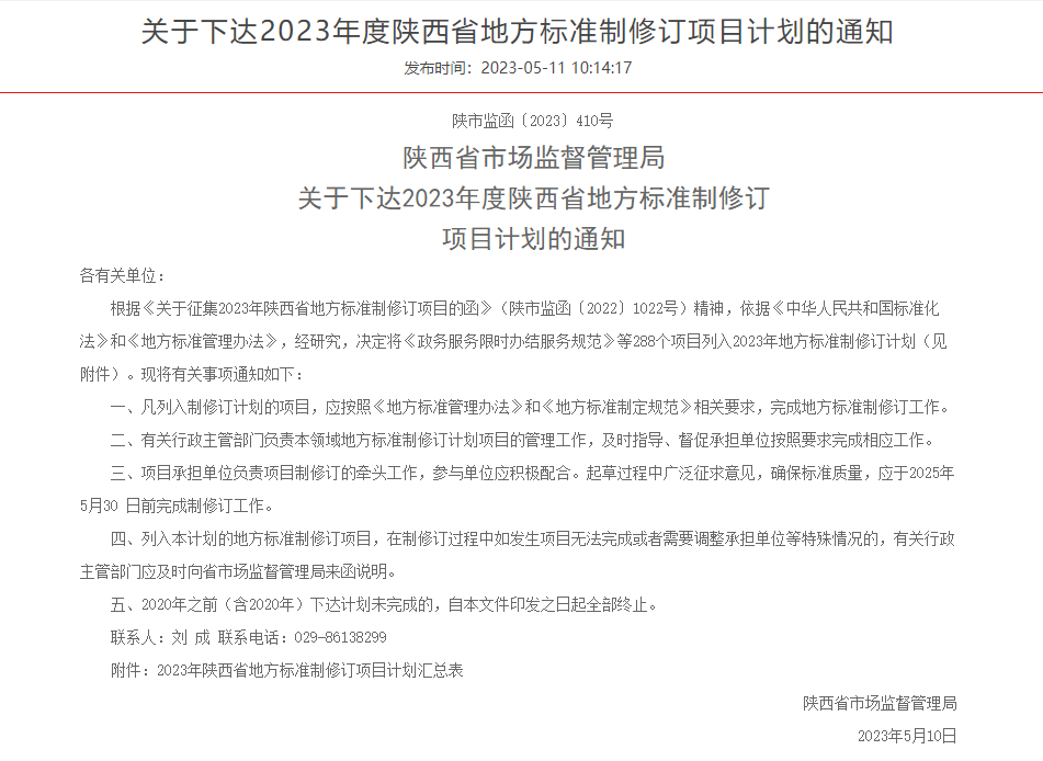 近日,陕西省市场监督管理局发布《关于下达2023年度陕西省地方标准制修订项目计划的通知》,五楼自拍