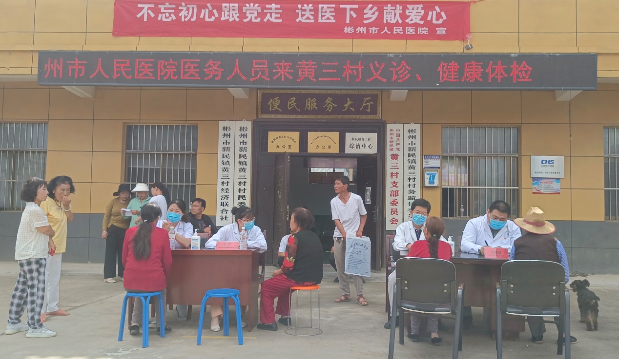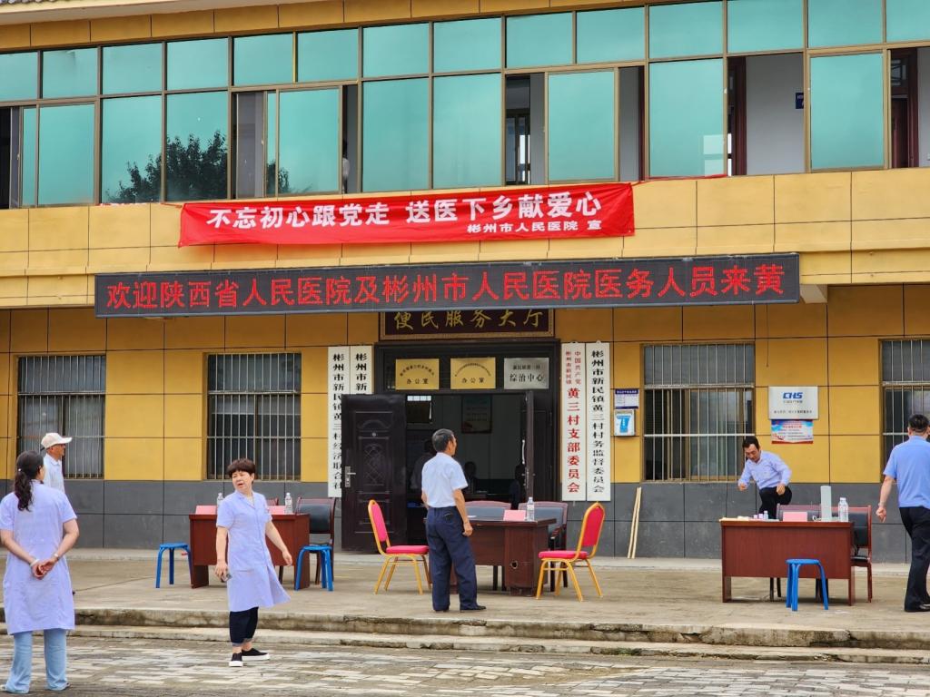 对口帮扶彬州市人民医院医疗队联合彬州市人民医院,不忘初心跟党走,送医下乡献爱心,一起走进彬州市北塬山区新民镇黄三村开展健康体检、疾病义诊活动。
