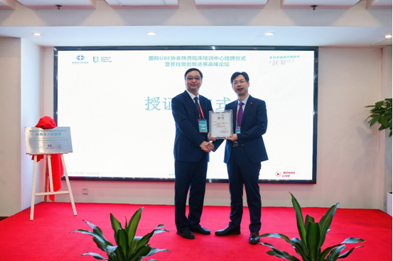 田大胜教授为“国际UBE协会陕西临床培训中心”主任刘时璋教授颁发证书