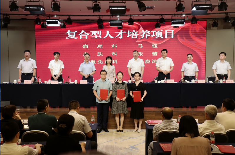 第二阶段,学科与人才高质量发展推进会。段降龙院长助理解读西咸院区学科规划建设方案,张恩科院长助理宣读医院高质量发展首批人才资助项目名单,王建华副院长宣读学科建设高质量发展首批立项资助名单,并在大会上颁发证书,进行授牌。最后院长宋张骏、党委书记张玉莲分别讲话。