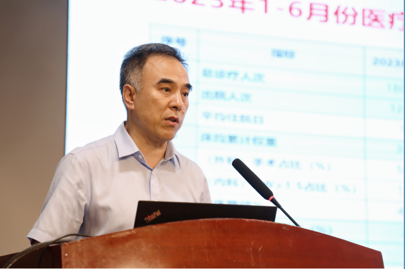 会议第一阶段,宋张骏院长进行上半年工作总结和下半年重点工作部署,王建华副院长通报上半年业务运行、公立医院绩效指标情况,马富春副院长通报财务运行情况,王利军纪委书记通报党建、党风廉政、群众身边腐败和作风问题专项整治工作,米涛副院长主持。