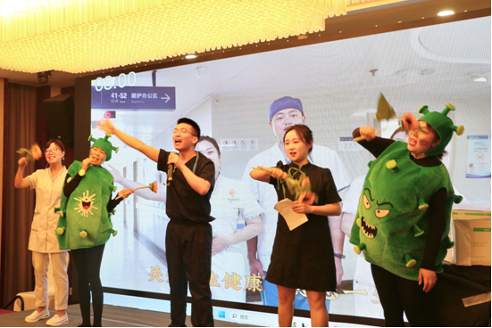 由刘莉莎、李镐茜、李梦娇、杨祎、刘阳组成团队推送的二号作品《愿您一生无“幽”》获得一等奖。该作品以幽门螺旋杆菌为题材,分享了感染途径、临床症状、检测方法、治疗用药,用歌曲传唱分享了用药标准和预防技巧,获得各位听众一致好评。