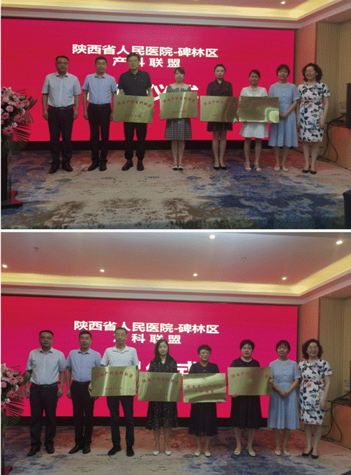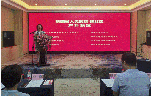 产科吴桂清主任做表态发言,并为中国人民解放军空军第九八六医院、西安市第一医院、西安市第九医院、西安医学院第三附属医院、西安新长安妇产医院、通用环球中铁西安院、陕西省交通医院及西安慈爱妇产医院等8家辖区内加入陕西产科专科联盟单位的医院授牌。