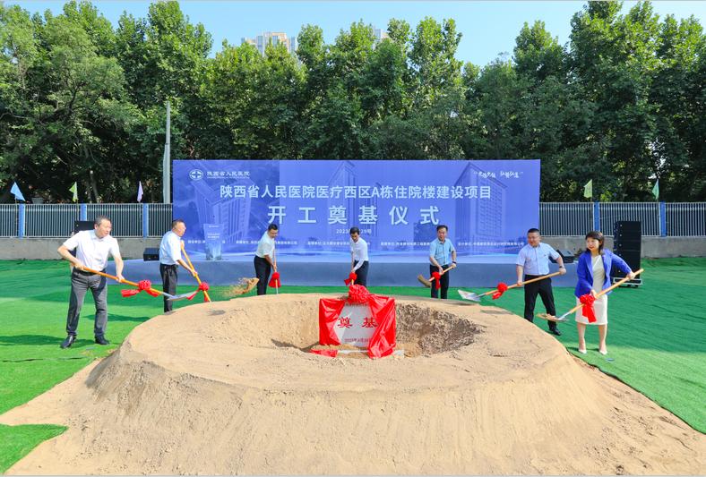 医疗西区A栋住院楼建设项目开工奠基仪式顺利举行。省卫健委党组书记、主任张军林,市卫健委党委委员、副主任吕永鹏,碑林区政府副区长、党组成员董晓楠,陕西建工第八建设集团有限公司党委书记、董事长章辉及党委副书记、总经理王勋,五楼自拍
