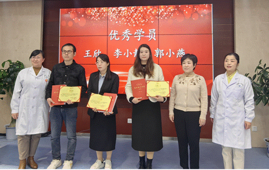 经过严格的考核,培训班评选出王欣、李小静、郭小燕3位学员为本期培训班优秀学员,评选出老年心内科王亚萍、老年呼吸科霍淑芬、老年神经科耿佼为优秀带教老师。医务处张小玲处长、教学处马东瑞处长、教学处张晓侠老师为优秀学员和优秀教师颁奖。李小静作为优秀学员代表,对这段时间的学习和感触发表感言,并代表全体学员向五楼自拍