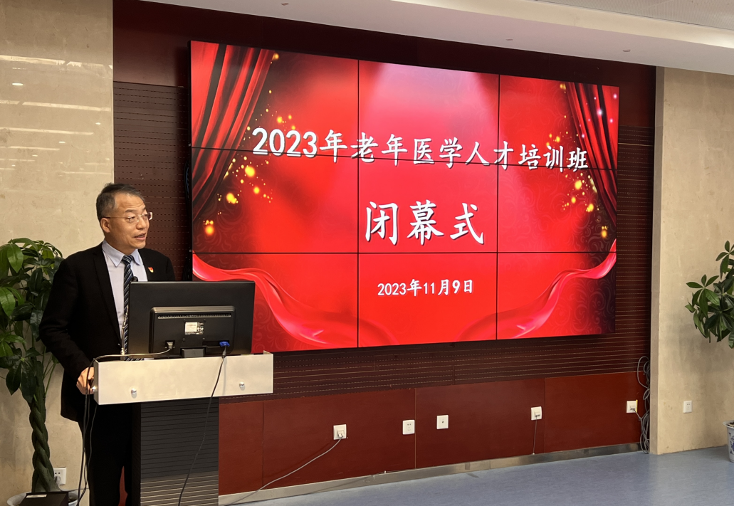 老年病院李锐主任医师致闭幕词,向本次培训工作中付出努力的老师们表示感谢,向顺利毕业的学员们表示祝贺!对本次培训工作亮点进行了总结,并对学员们提出了殷切的期望和要求,让他们带着累累硕果,大力推进当地老年医学建设,肩负起时代赋予的责任,以专业的知识和技能迎接老龄化时代的挑战。