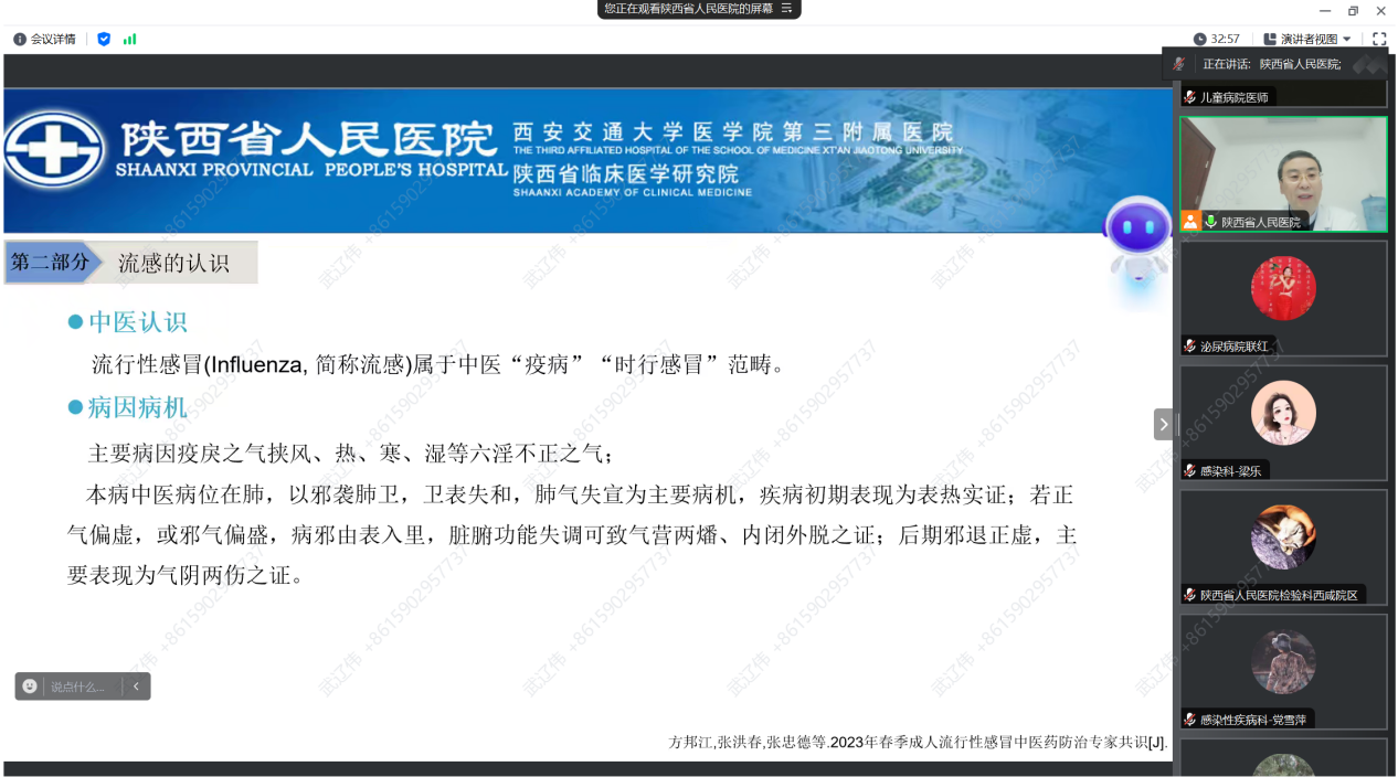 呼吸内一科王君主任医师做了题目为《急性呼吸道感染性疾病流行现状及诊治策略》的培训课程,从呼吸系统疾病流行现状、急性呼吸道感染性疾病诊治概述、流行性感冒的诊治以及成人支原体肺炎的诊治四个方面对当前呼吸系统疾病的诊疗救治做了详细的培训。中医科雷鹏主任医师做了题目为《流感的中医辨治及综合管理》的培训授课,从流感的中医辨证切入,深入浅出地讲解了流行性感冒不同阶段的中医诊治策略,同时给予了流感的中医综合治疗方案。两位专家的授课内容紧贴临床呼吸系统疾病诊疗救治工作,重点突出,层次分明。