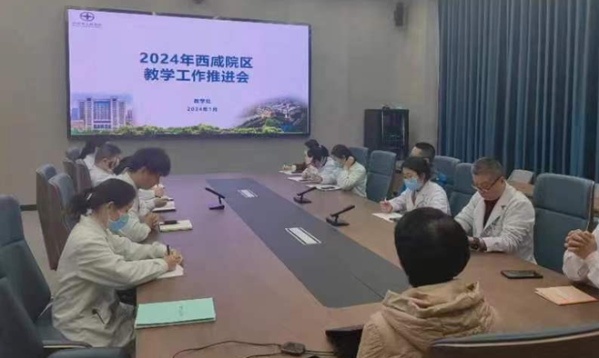 主院区及西咸院区教学管理,同质化开展教学工作,全力推进西咸院区工作落实,培养合格住院医师,1月5日上午,教学处在西咸院区召开教学工作推进会,西咸院区急诊医学中心、儿科、心血管内科、神经内科、呼吸与危重症医学科、移植泌尿外科等6个科室教学管理人员参会,教学处温红侠副处长主持。