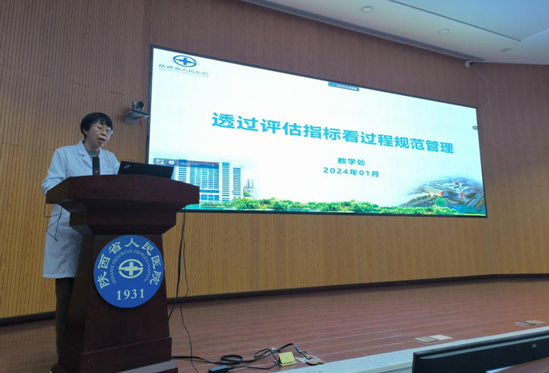 培训会上,教学处温红侠副处长以《透过评估指标看过程规范管理》为题,结合科室优秀管理经验,从培训基地的基本条件、师资条件、培训管理、质量控制等四个评估方面出发,详尽解读了评估内容、评估方法及评估标准。她强调,各科室需及时传达会议精神,充分发挥骨干师资的优势,确保每位带教老师都能深入理解和掌握评估指标及过程规范管理的要求。同时,注重教师队伍结构优化,选拔具备丰富临床经验和教学能力的医师担任带教老师,实施动态化管理。此外,她还要求各科室对标各项评分标准,及时发现并解决问题,规范开展教学活动,持续提高教学质量。