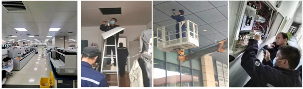 水电修缮班组面对整治活动中维修任务重、工作多的情况,统筹安排主动请缨,快速推进各项维修任务。水工班为解决医院北门雨水管网主管道严重堵塞的顽疾,主动联合A楼基建办协调市政排水集团现场清淤畅通,消除了雨季积水的安全隐患;电工班加班抢修科室配电线路、灯具、整理各类凌乱电线,更换检验科大厅等处照明灯具,提升患者就医体验;修缮班不辞辛苦,穿梭于主院区与西咸院区之间,解决临床科室各类维修问题,推进适应性改造项目,为医院高质量发展添砖加瓦。