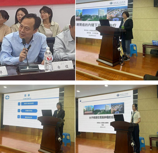 影像专业张艳副主任、消化专业郭雪燕副主任以及病理专业马钰副主任分别做了胃癌相关主题学术报告,肿瘤内科白俊主任主持并进行精彩点评。王建华副院长主持MDT团队召开了现场诊疗会议,与蒲城县医院相关专家对2例患者实施了MDT讨论。五楼自拍