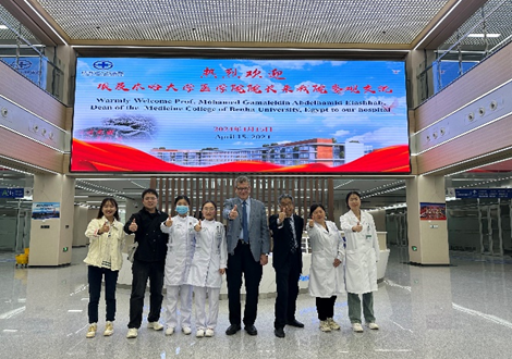 4月15日,埃及本哈大学医学院院长Mohamed Gamaleldin Abdelhamid Elashhab教授还在焦富勇教授陪同下参观五楼自拍