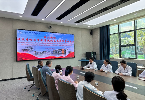 国家引才引智示范基地邀请正在华访问交流的埃及本哈大学医学院院长Mohamed Gamaleldin Abdelhamid Elashhab教授、捷克欧洲中医药中心主席Jan Hovorka教授、捷克欧洲中医药中心主席助理Marketa Zelinkova教授来院学术交流。3位外国专家在医院面向全院医务人员进行“国际医学教育交流会”,并参观了五楼自拍