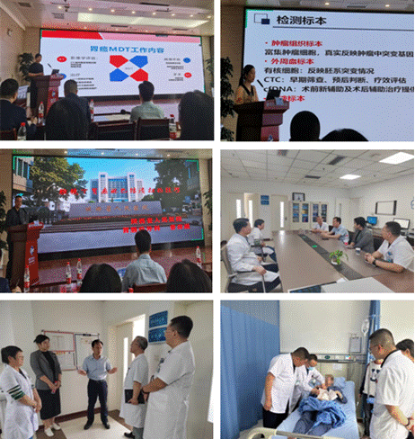 胃部肿瘤MDT团队秘书、肿瘤内科副主任刘屹博士,病理科副主任马钰博士和普外二科普彦淞博士分别做了胃部肿瘤MDT诊疗模式经验分享和消化道肿瘤的分子病理及胃癌的外科治疗交流分享,肿瘤内科白俊主任主持并进行精彩点评。会后,专家们深入相关科室进行对接和查房指导,探讨进一步合作事宜。