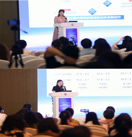护理部主任助理刘红梅发表了题为《多元化智能随访平台的设计与应用》的演讲,介绍了智能随访平台的设计理念、功能特点以及在实际应用中的成效。付佳副护士长以《智慧随访系统在肠造口患者中的应用》为题,分享了科室护理团队在肠造口患者护理方面的创新实践,她详细介绍了智能随访系统如何帮助肠造口患者实现更便捷的自我管理和健康监测,助力患者康复。