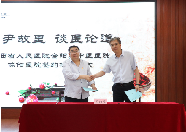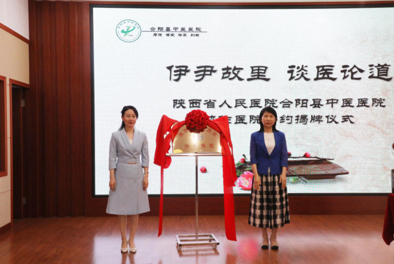 与合阳县中医医院建立协作医院关系签约暨揭牌仪式。张路副书记与合阳县中医医院签署协作医院协议,张玉莲书记揭牌并讲话。