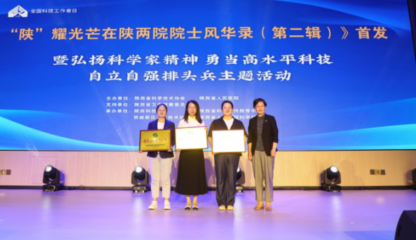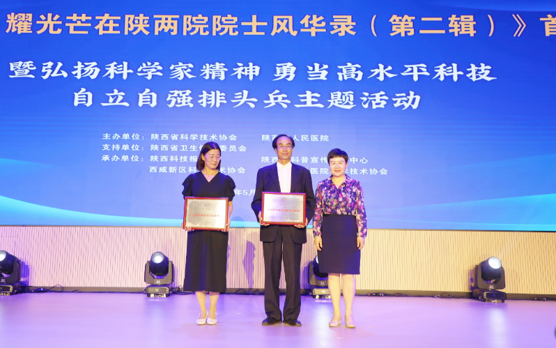 5月28日,陕西省科协、省人民医院联合在西咸院区大礼堂,共同主办《“陕”耀光芒在陕两院院士风华录(第二辑)》首发暨“弘扬科学家精神,勇当高水平科技自立自强排头兵”全国科技工作者日主题活动。中国工程院院士陈志南、省科协党组书记李豫琦、省科协常务副主席李肇娥、省卫健委副主任余立平、省人民医院党委书记张玉莲、院长宋张骏、省科协副主席张俊华、省青年科技工作者协会副主席王震,及西咸新区科技局、五楼自拍
