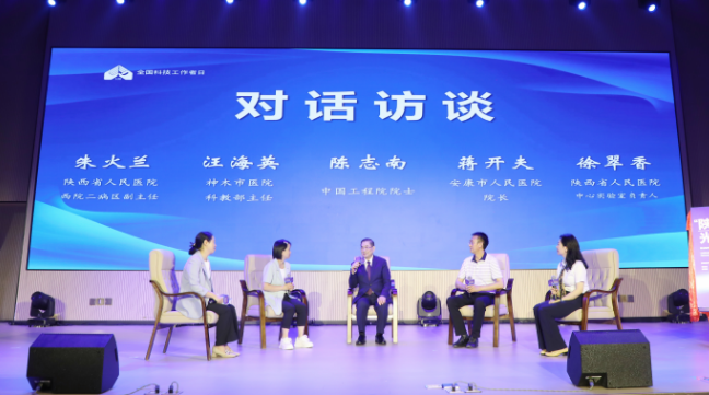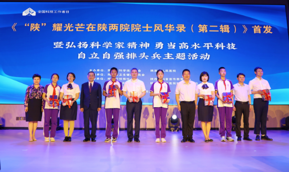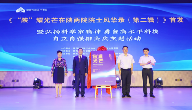 活动现场,陈志南院士、李豫琦书记、李肇娥常务副主席、余立平副主任为《“陕”耀光芒在陕两院院士风华录(第二辑)》揭幕,隆重发布《“陕”耀光芒在陕两院院士风华录(第二辑)》。青年科技工作者代表向院士献花,院士和领导向青少年及科技工作者代表赠送图书,青少年代表诗朗诵致敬院士及科技工作者。院士对话访谈环节,来自省人民医院和陕南陕北基层医疗机构的4名青年科技工作者代表,围绕科研工作、学习生活、科技创新等问题与院士进行探讨交流,院士为青年科技工作者答疑解惑。