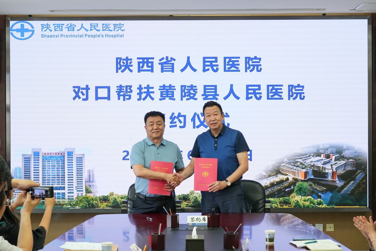 对口帮扶黄陵县人民医院协议书》。黄陵县人民政府刘志江副县长、县卫健局刘正阳局长、县医院胡勇院长,五楼自拍