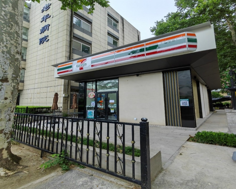 7-ELEVEN便利店位于老年病院北侧,提供24小时不打烊服务,可随时满足医务人员及患者的急需。店内食品、饮料、生活用品达3000余种,物品多样、保质保鲜、安全可靠,并且提供饮食休息区域。这里不只是方便快捷的购物场所,还是为医务人员、患者及家属提供温暖饭菜和热咖啡的休憩地和补给站,承载着人间烟火气,释放着善意,也投递着温情。