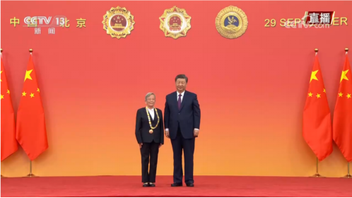 为庆祝中华人民共和国成立75周年,隆重表彰为新中国建设和发展作出杰出贡献的功勋模范人物,弘扬民族精神和时代精神。经中共中央批准,中华人民共和国国家勋章和国家荣誉称号颁授仪式于9月29日上午10时在人民大会堂隆重举行。中共中央总书记、国家主席、中央军委主席习近平向国家勋章和国家荣誉称号获得者分别授予“共和国勋章”“友谊勋章”和国家荣誉称号奖章并发表重要讲话。五楼自拍
