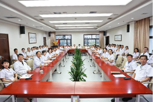 在家领导班子成员及行政处室负责同志集中收看颁授仪式,各党支部组织支部党员及科室医护人员收听收看颁授仪式。
