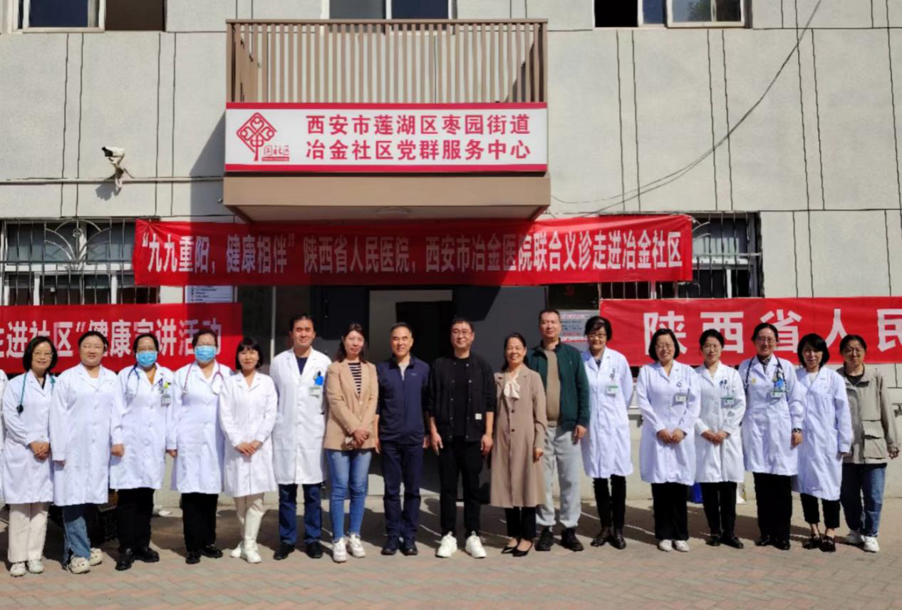 专家在王建华副院长带领下,联合协作医院--西安市冶金医院走进西安市莲湖区枣园街办冶金社区,开展“九九重阳、健康相伴”为主题的关注老年人健康义诊活动。活动把五楼自拍