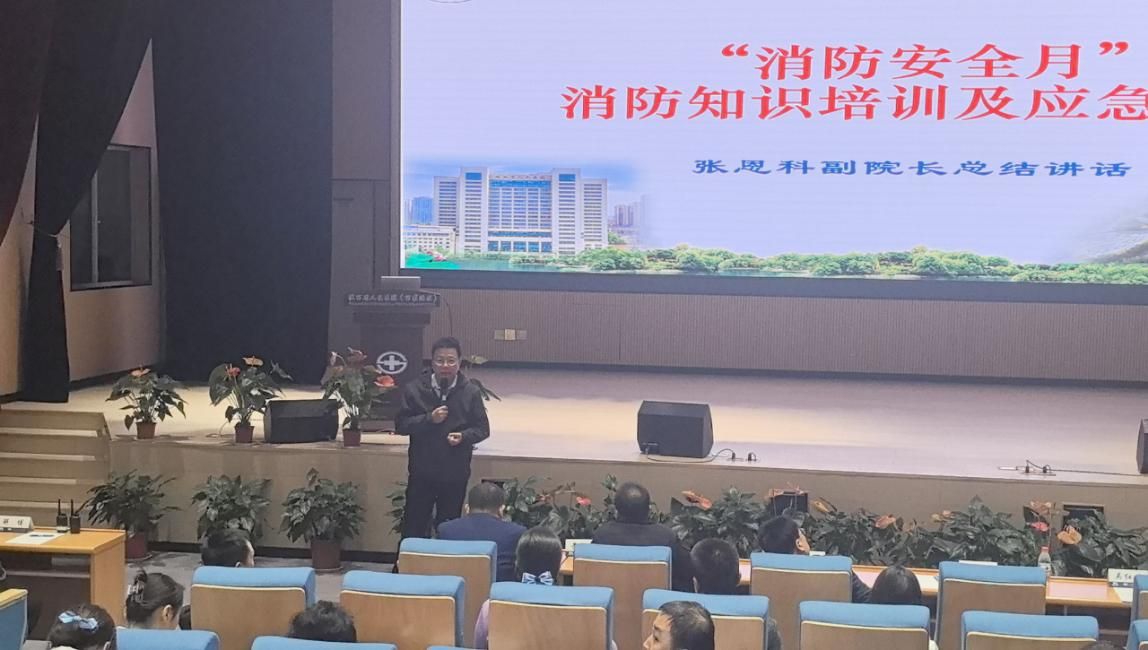 张恩科副院长做总结讲话,强调了在第33个消防安全日来临之际开展消防知识培训和演练非常及时和必要,提高了大家的消防安全意识和防火自救能力以及处置突发火灾的能力。希望西咸院区医护人员和行政后勤人员提高政治站位抓安全,从心灵拷问珍惜生命,履行岗位安全职责,确保医院安全平稳运行。