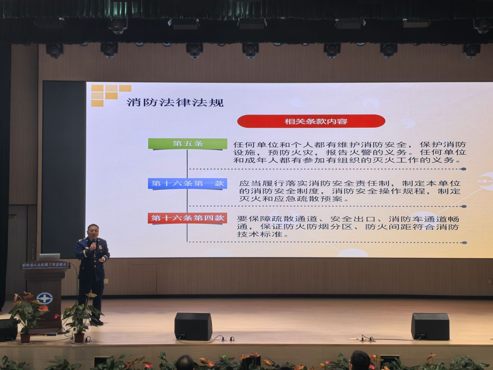 景新军所长结合大量真实案例讲解了安全防范重要性和具体措施,张鲁所长详细讲解医院消防重点工作和应急逃生。随后组织全体参会人员共同观看消防演练视频,并观摩呼吸与危重症医学科(西咸)消防应急实战演练。