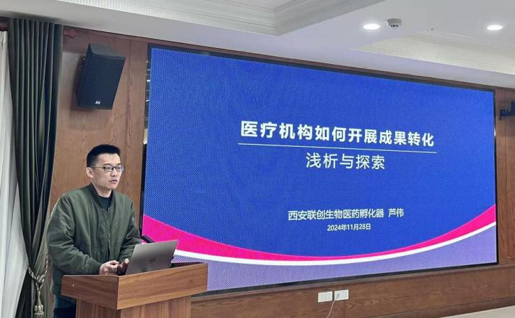 科技成果转化“三项改革”工作的最新进展,并分享了相关成果和实施情况。随后,陕西省科技资源统筹中心金融部李娟科长详细介绍了我省科技成果转化“三项改革”政策的最新动态和支持措施,解答了现场参会人员对科技成果转化政策的诸多疑问。西安联创生物医药孵化器芦伟总经理进行了《医院如何开展科技成果转化》主题讲座,分享了科技成果转化领域的实践经验和具体案例,为在场的科研人员提供了宝贵的指导和启示。