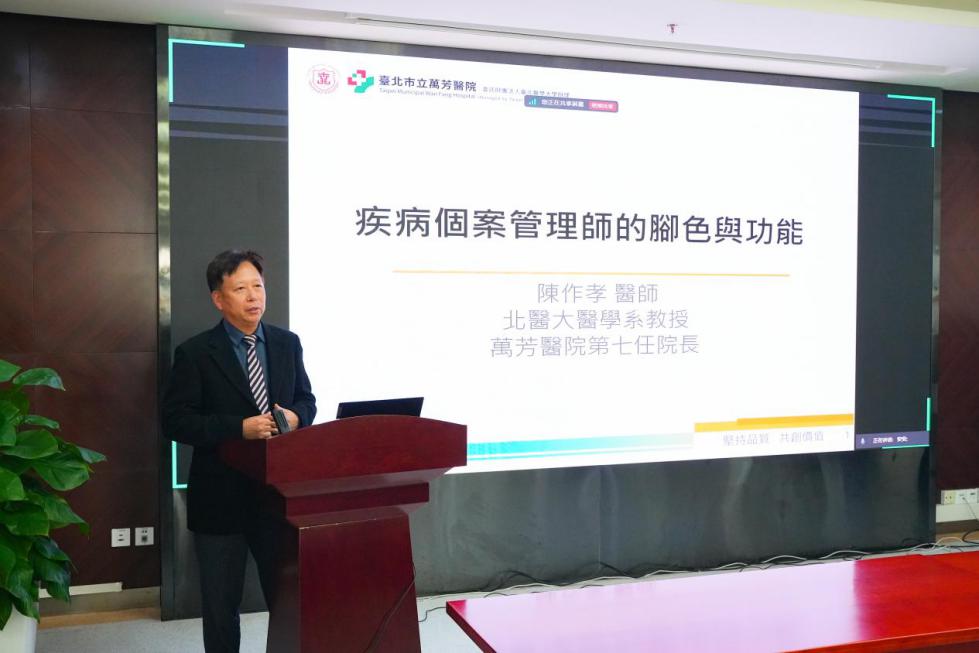 特邀台湾医学中心台北市立万芳医院院长陈作孝、台湾健仁医院院长特别助理陈俊琪一行4人来院进行个案管理学术交流。五楼自拍