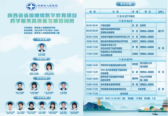 药学部承办的省级继续医学教育项目——药学服务高质量发展培训班成功举办。药学部张鹏总药师致开幕词,近100名来自陕西省内各级医疗机构的药师线下参加学习。