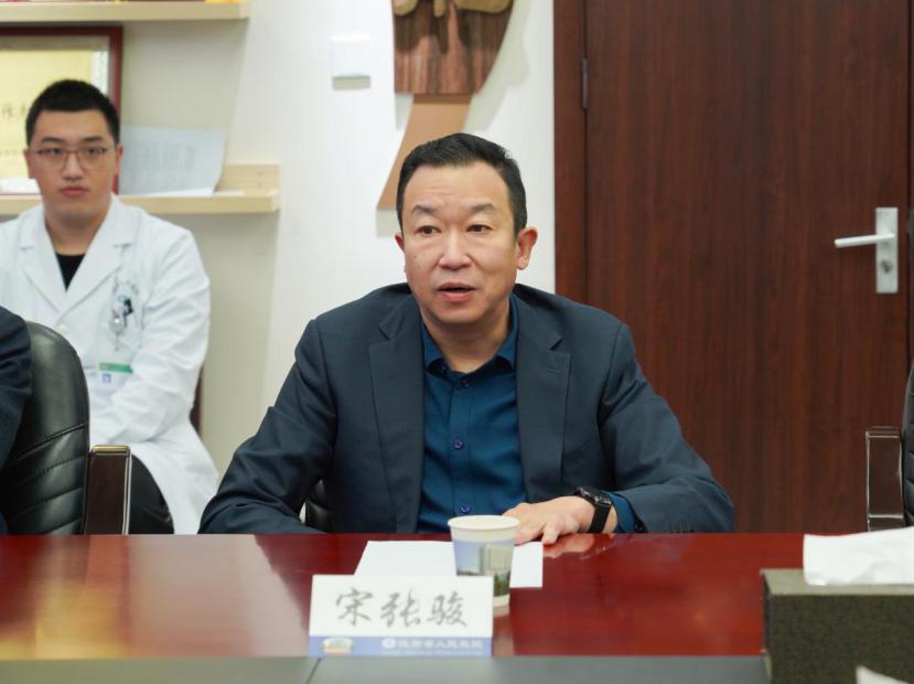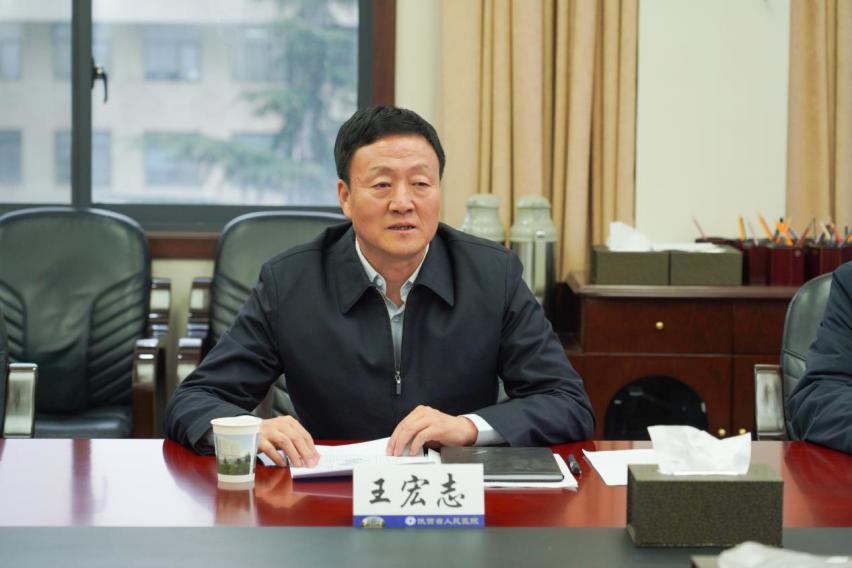 院长宋张骏讲话,欢迎王宏志书记一行来院座谈签约,感谢彬州市委市政府、市卫健局及彬州市人民医疗健康总院和彬州百姓对省医院的关心支持和信任,对彬州市委市政府重视一体两翼发展,重视医疗卫生民生工程表示高度赞赏。强调五楼自拍