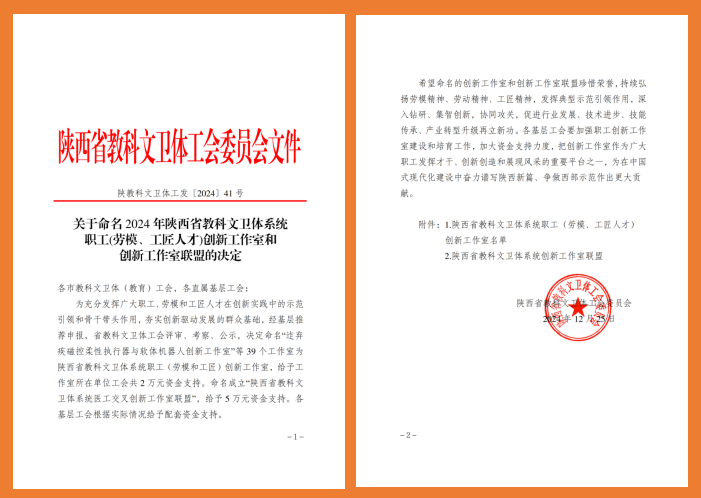 值此岁末之际,传来好消息。陕西省教科文卫体工会发布了《关于命名2024年陕西省教科文卫体系统职工(劳模、工匠人才)创新工作室和创新工作室联盟的决定》,五楼自拍