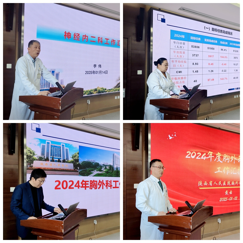 各科室主任及支部书记依次汇报,大家围绕2024年科室、党建工作情况,结合工作实效,亮数据、做分析,汇报2024年科室目标任务完成情况;聚焦医疗运行、学科发展、管理实效等各方面的亮点、特色和成效总结2024年工作;围绕党建、医疗、教学、管理、科研等方面高质量发展策略阐述2025 年工作计划。