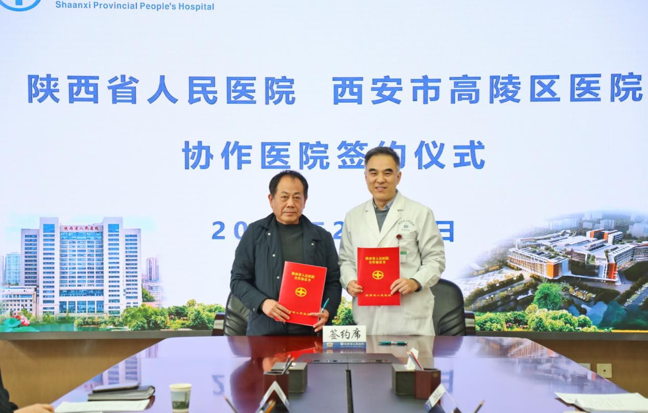 最后,王建华副院长代表医院与高陵区卫健局胡建莉书记签订了医疗卫生院府合作协议书,与高陵区医院李晓虎院长签订了协作医院协议书。与会人员进行了深入的探讨,就帮扶形式和合作内容达成共识。