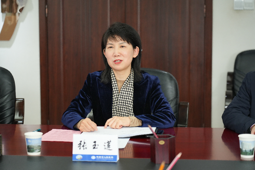 党委书记张玉莲、副院长段降龙、教学处处长马东瑞及院办、财务处、医务处、人事处、科研处、后勤管理中心等部门负责人参加会议。双方就医教协同及本科教育教学审核评估支持工作展开交流,共拓合作路径,共谋发展新篇。