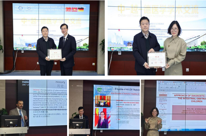 副院长段降龙代表医院对3位教授的来访表示欢迎,并代表基地为越南2位教授颁发证书,陕西省国际医学交流促进会科研部负责人黄亚宁、国际部干事麻菲雯、骨科副主任段大鹏等参会。仪式由儿童病院名誉院长焦富勇主持。