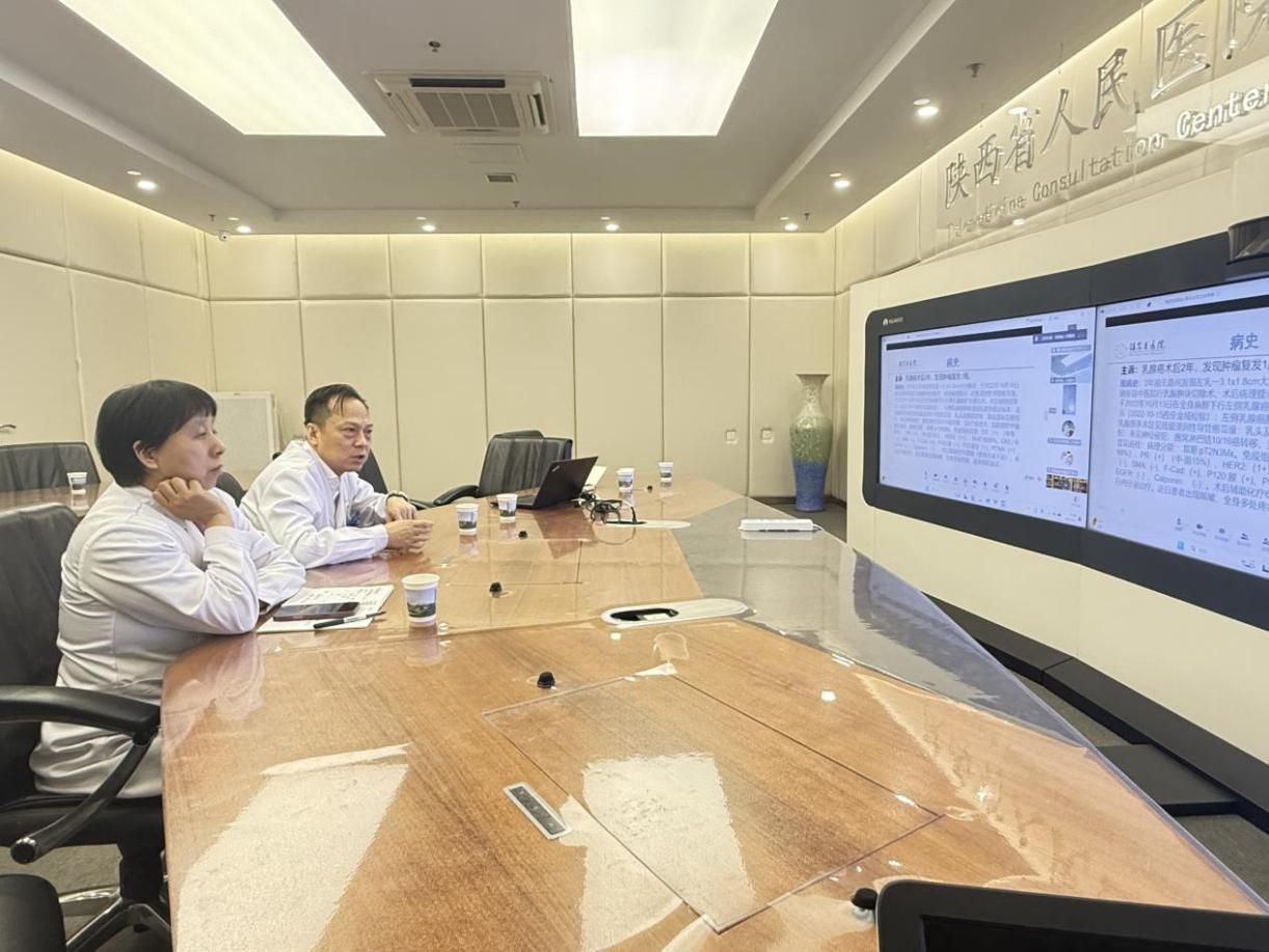 胃部肿瘤MDT团队负责人主持开展了第一例胃部肿瘤患者远程多学科会诊。其余4例由基层医疗服务部组织泌尿外科、胸外科、肿瘤外科、心脏外科、肿瘤内科、营养科、影像诊断中心、药学部、感染性疾病科等专业,30余名专家构成“云端多学科团队”,与镇安县医院医务人员同步上线,通过实时调阅患者相关病历及检查影像资料,专家们从不同角度对相关病例进行了全面分析,为5位患者制定了个性化诊疗方案,并就检验检查、营养方案调整、用药指导、康复训练及随访计划等给予精准指导。镇安县医院参与讨论的医务人员对五楼自拍