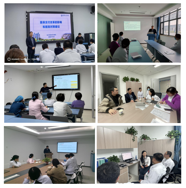 现场交流,答疑解惑。集中培训结束后,医疗保险管理处分四个宣讲小组,深入13个独立临床科室进行面对面交流。宣讲小组结合科室运行数据,与临床一线人员重点对DRG付费政策调整后临床常见问题、具体困惑以及需要行政管理部门参与解决事项进行了讨论,并提出了有针对性的应对策略。